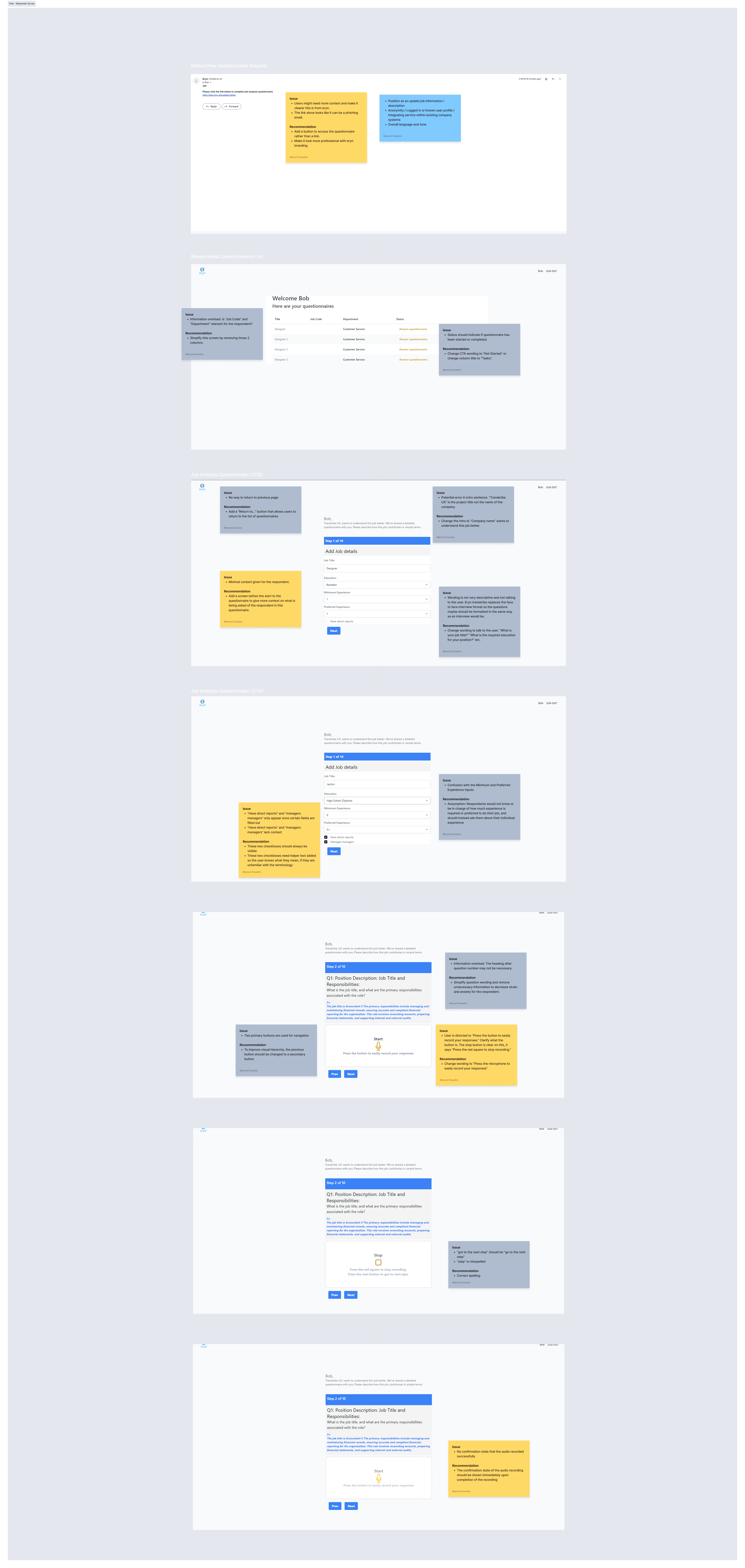 To further understand the pain points and usability issues in the current system, I conducted usability testing with 3 participants. The primary task was to assess the job questionnaire feature.